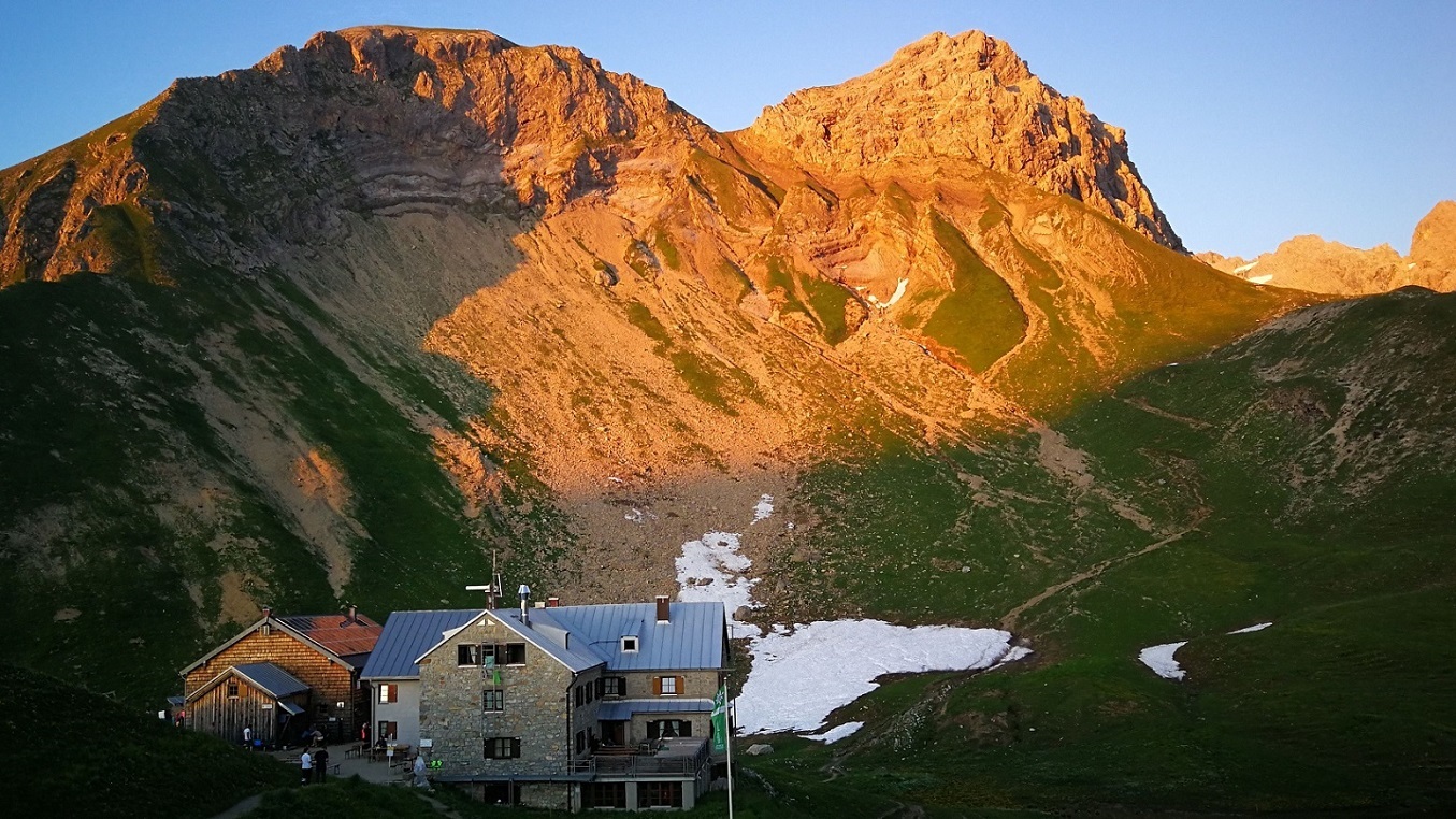 Früh am Morgen beginnst Du Deinen Abstieg Richtung Lechleiten. Den Mutzentobel querst Du an wenigen Seilen und gelangst nun über recht einfache Pfade hinunter nach Lechleiten in Tirol. Dabei trohnt östlich von Dir der mächtige Biberkopf. Mit dem Bus und Taxi geht es nun bis zur Materialseilbahn der Memminger Hütte. Dort beginnt direkt der Aufstieg. Vorsicht: auf keinen Fall dort das Wasser trinken! Kurz vor der Memminger Hütte weitet sich die Landschaft. An der Hütte (2.242 m) angekommen, kannst Du noch zu den Seewiseen laufen oder auch zum Sonnenuntergang den Seekogel erklimmen (ca. 200 Höhemeter zusätzlich). Einkehren ist in Lechleiten, Holzgau möglich.