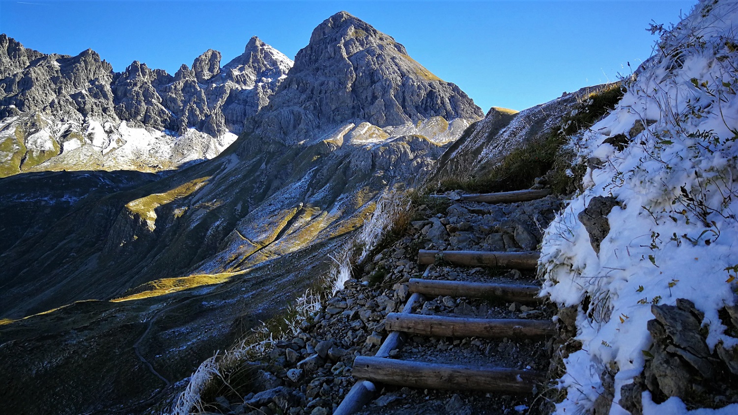 Diese Frage kommt meist bei der Alpenüberquerung auf dem E5 auf. Es gibt keine Kletterstellen, jedoch seilversicherte Passagen. Die Seile dienen der Sicherheit. Je nachdem wie sicher du dich fühlst, kannst Du sie nutzen oder auch nicht.